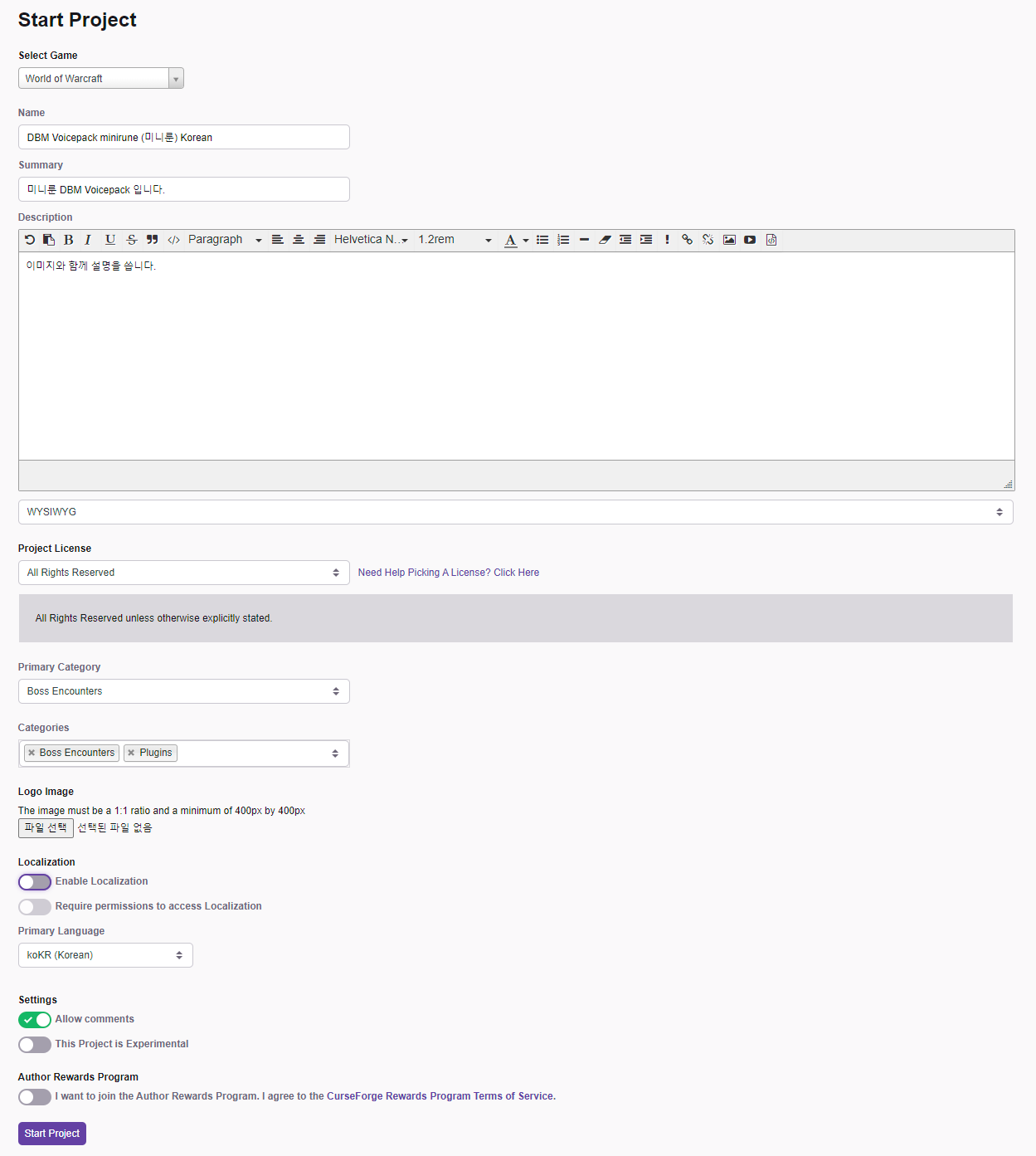 Logo Image와 다르게 파일 업로드하는 공간이 따로 없는 것으로 보아 Project를 시작한 뒤에 Addon및 Plugin파일을 업로드하는 것으로 보이는데 이 부분은 정식 Project를 업로드 한 뒤에 수정하도록 하겠습니다.